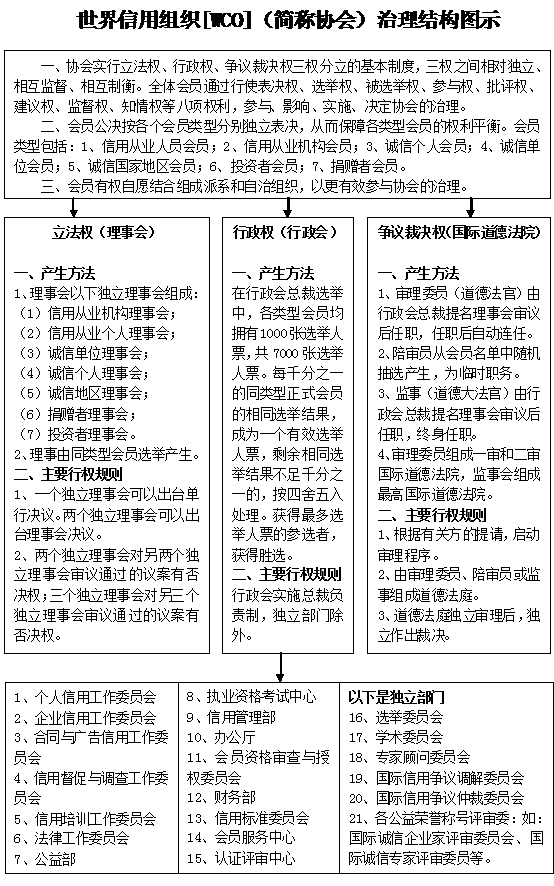 世界信用组织【WCO】组织结构图示和主要管理人员-世界信用组织